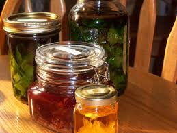 A container with a tight lid is better for retaining the essences than a teapot. Jars with a screw top lid can be used, if you warm the jar first. Place about a cupful of herb into a two pint jar, fill to the top with boiling water, seal tightly. Leave to brew for a minimum of 4 hours for leaf infusions, 2 hours for flowers.