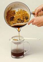 7.Strain through a muslin cloth in a strainer, coffee filter paper or jelly bag, pressing out all the liquid. Discard the herbs and use for garden compost.